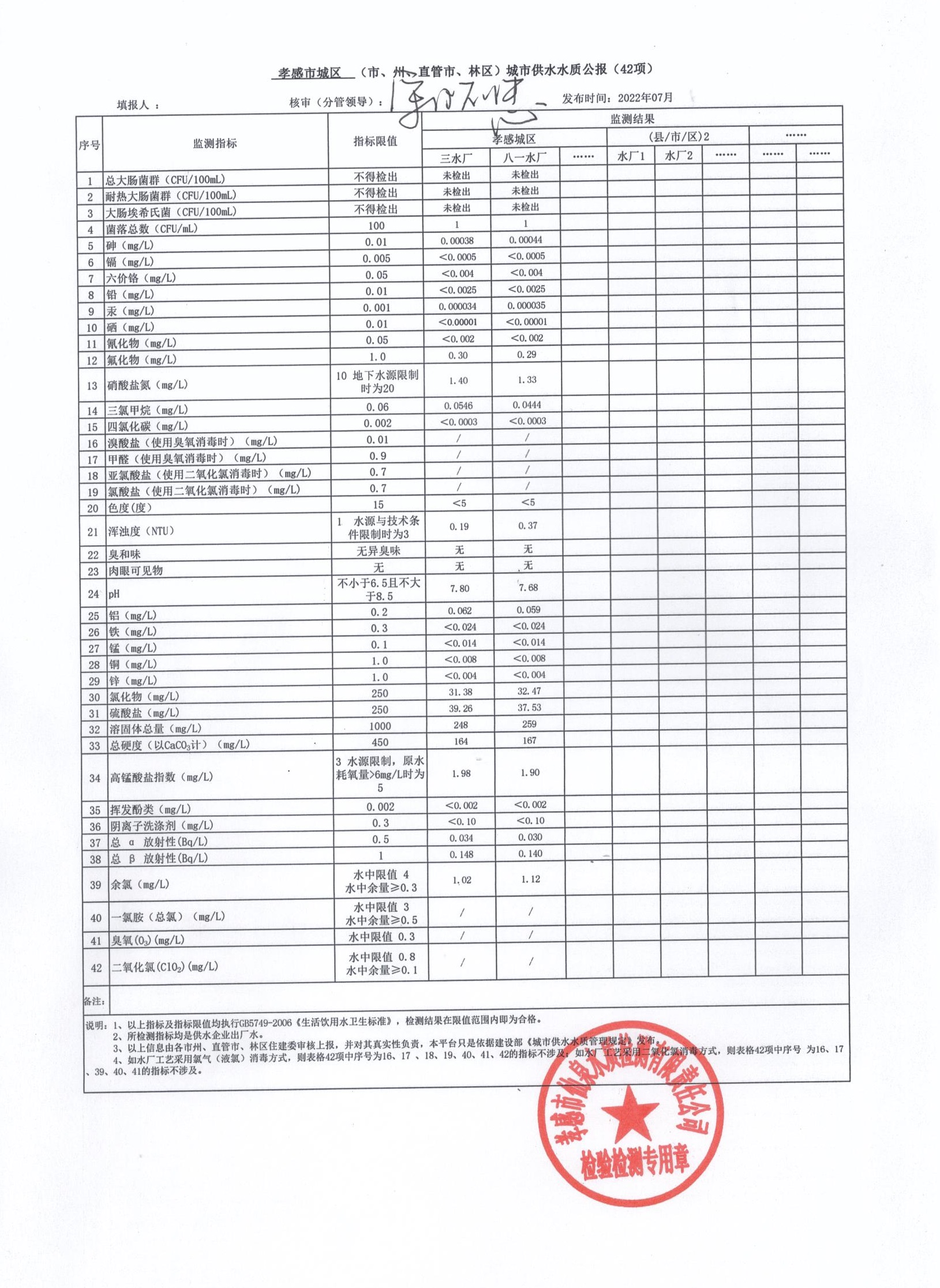 2022年7月水質報告