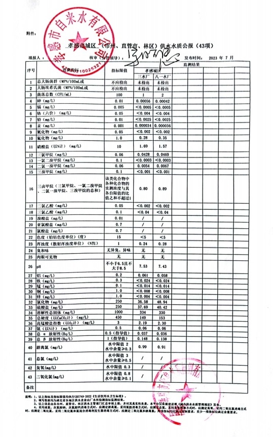 2023年7月水質(zhì)報(bào)告