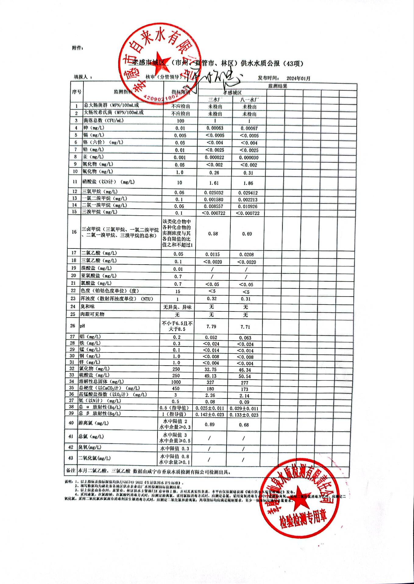 2024年1月水質(zhì)報告