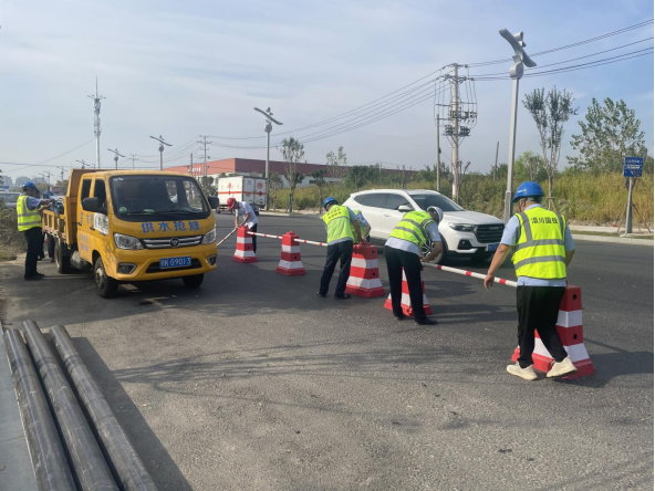 為確保城市供水安全穩(wěn)定,提高應(yīng)對供水管網(wǎng)突發(fā)事件的能力,9月26日上午,公司開展供水管網(wǎng)突發(fā)事件應(yīng)急演練。本次演練模擬場景為航空路DN400PE主管線突然爆管,經(jīng)現(xiàn)場研判,出動應(yīng)急搶險工具車5輛、挖掘機1臺,灑水車1輛,9個職能部門共計30余人聯(lián)動參與。