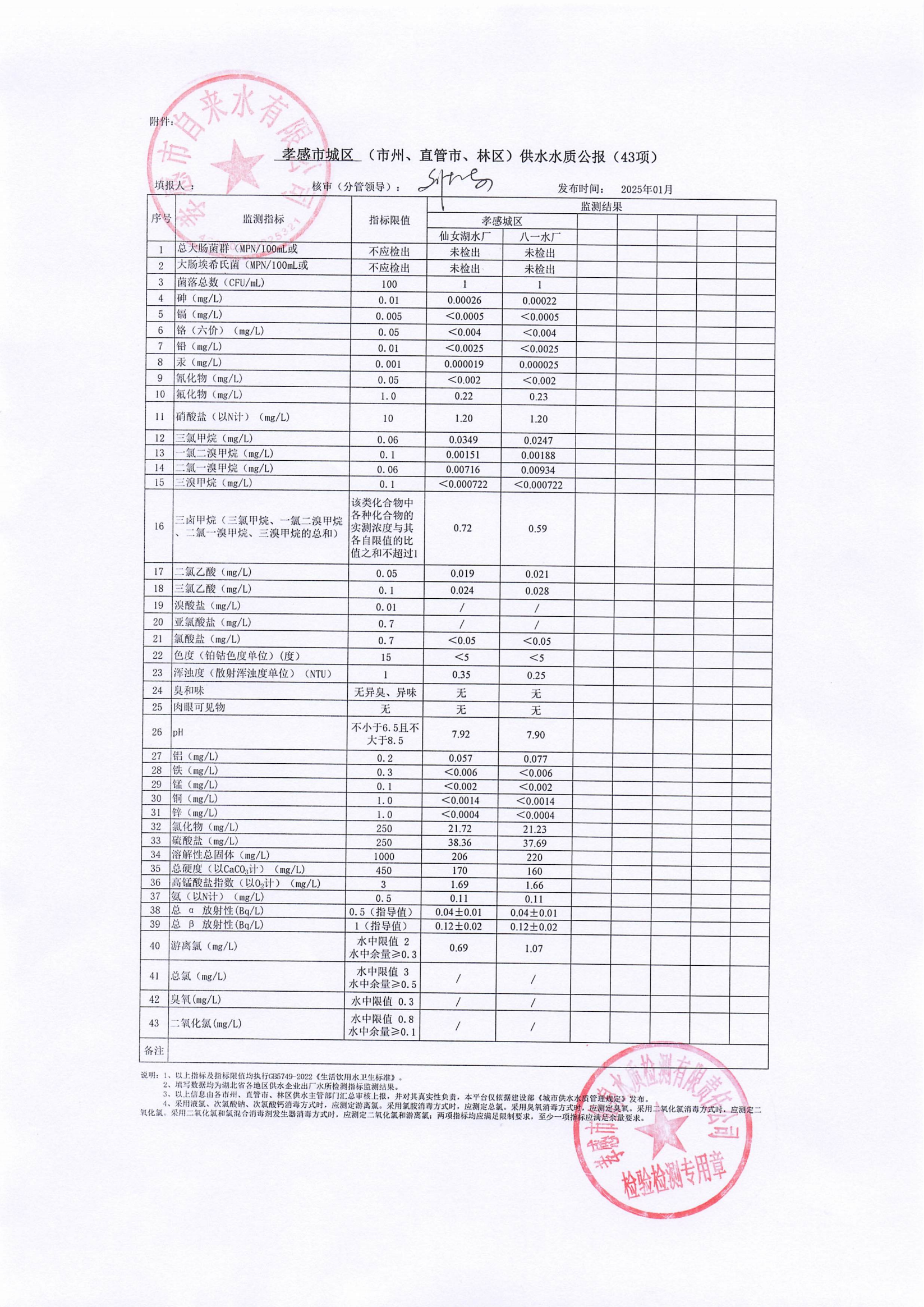 2025年1月水質(zhì)報告