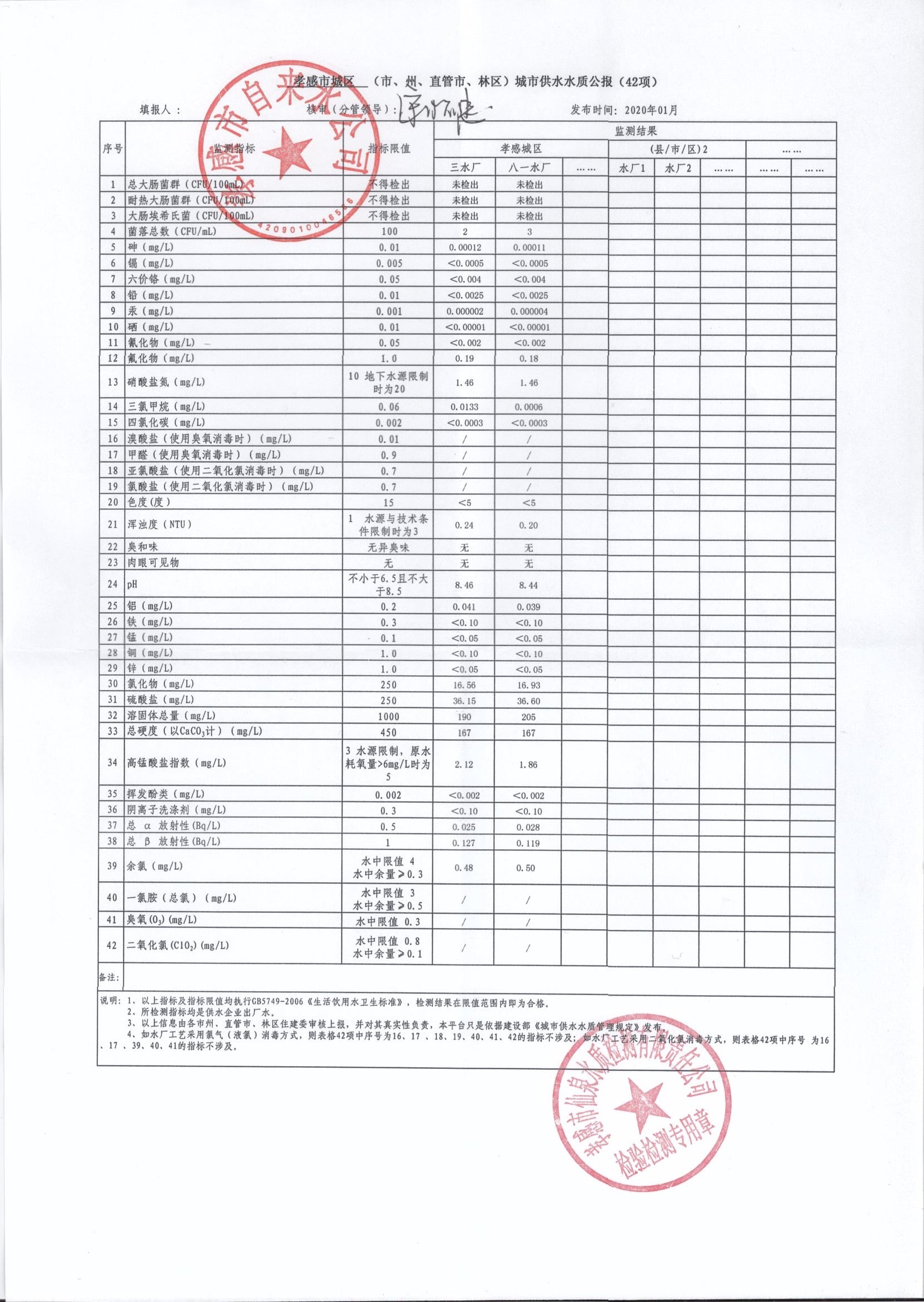 2020年1月水質報告