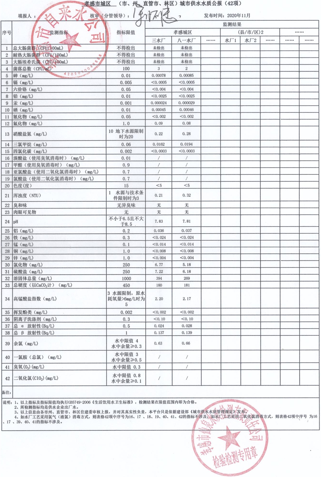 2020年11月水質報告